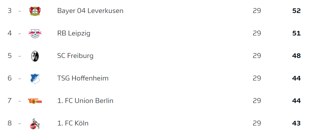Victorii pentru Bayern și Dortmund în frunta clasamentului, dar nouă puncte avans cu cinci etape rămase de jucat sunt mai mult decât suficiente pentru Bayern. Bundesliga rămâne însă interesantă de urmărit la lupta pentru locurile de cupe europene și la retrogradare. Trei înfrângeri consecutive au scos-o pe Hoffenheim din lupta pentru ultimul loc de Champions League, dar Freiburg nu se dă bătută (învingând în această etapă pe terenul lui Frankfurt, 1-2).
