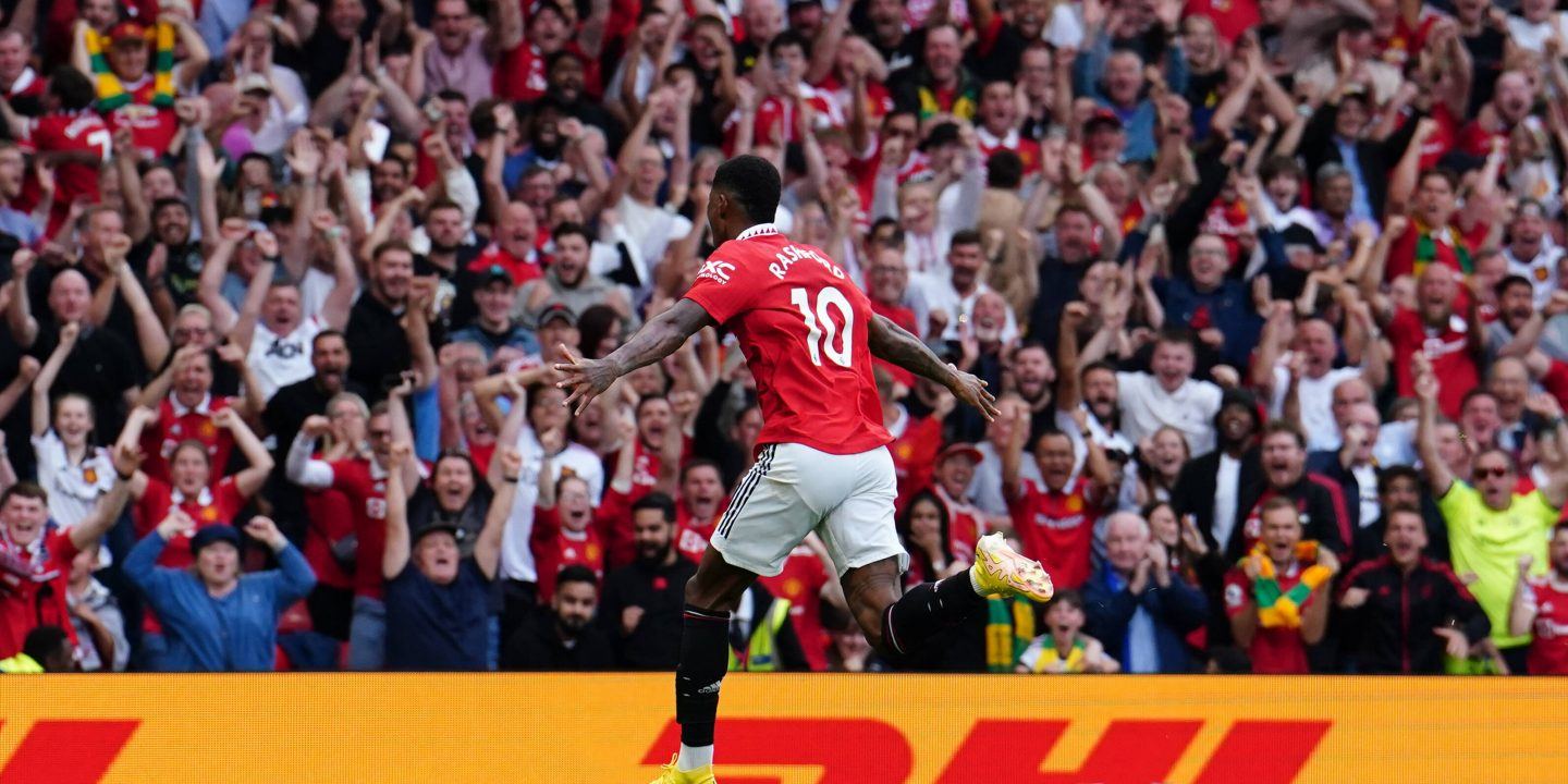 Într-un meci dominat ca posesie de Arsenal, Manchester United a jucat perfect cartea contraatacului și a reușit să marcheze de trei ori. Oaspeții au marcat primii, în minutul 13, prin Martinelli dar golul a fost anulat de VAR. În ciuda dominării celor de la Arsenal, United a reuști să deschidă scorul în minutul 35. Brazilianul Antony, noua vedetă transferată pe aproape 100 de milioane de euro de la Ajax, a semnat reușita iar gazdele au intrat în avantaj la pauză.