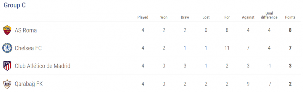 În etapa inaugurală a grupelor Ligii, Chelsea i-a scuturat serios pe azerii de la FK Qarabag, cu 6-0. De atunci, The Blues au învins-o pe Atletico Madrid în deplasare, au făcut 3-3 cu Roma acasă și au pierdut “returul” cu romanii etapa trecută (3-0). Fără victorie la Baku însă, calificarea lui Chelsea din grupă s-ar juca pe Stamford Bridge, cu Atletico…