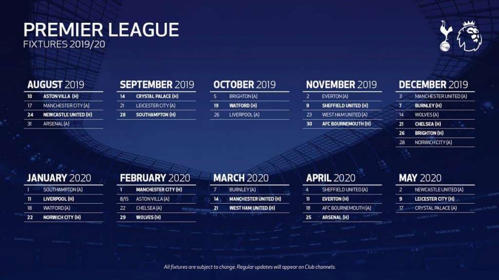 Programul complet al lui Tottenham pentru stagiunea 2019/20 din Premier League